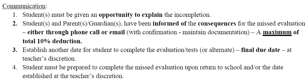 MISSED ASSESSMENT POLICY